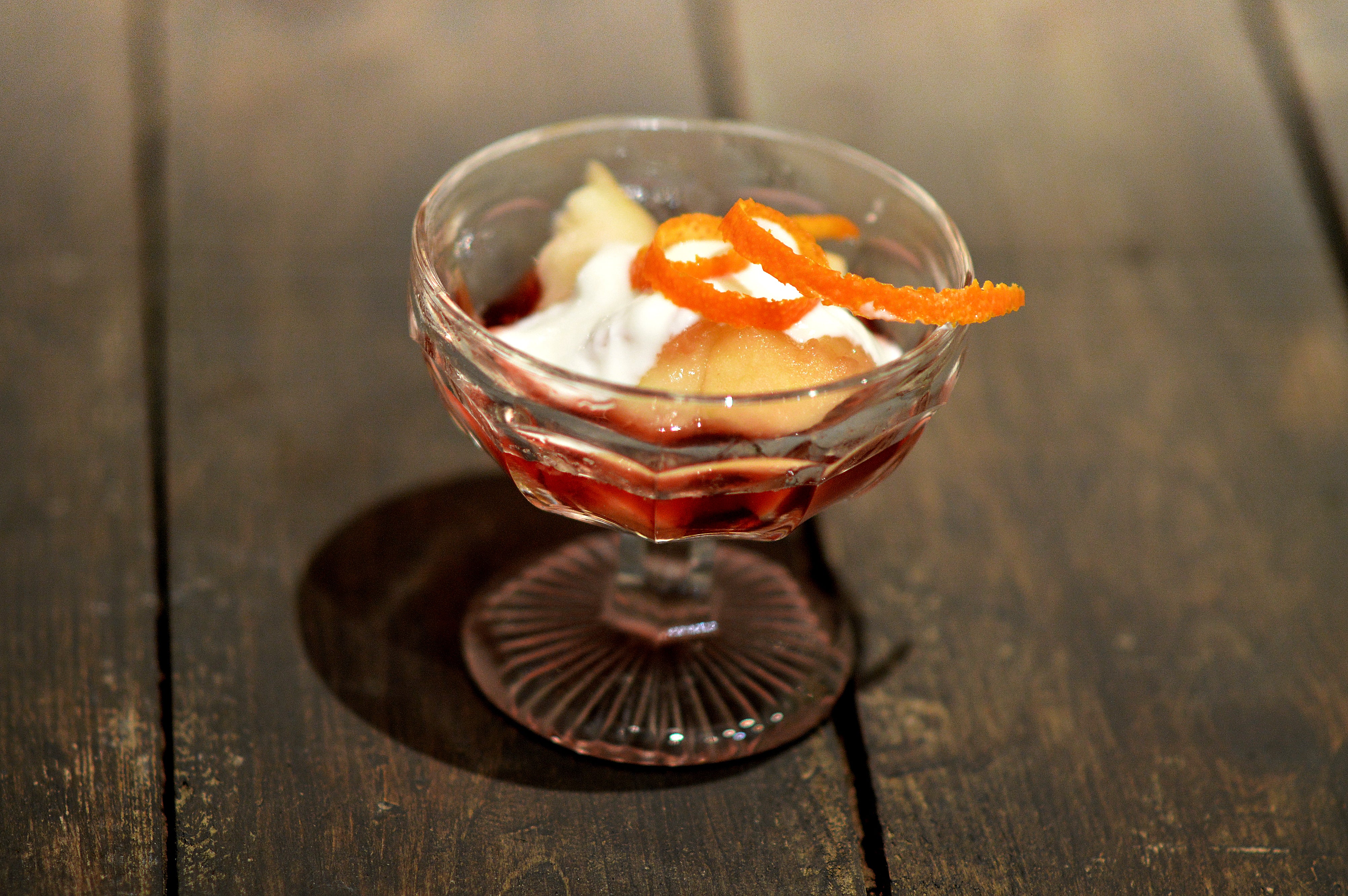 Ingredients 1 part Sloe Gin 2 parts hot water 2 parts cloudy juice (Yorkshire Wolds Apple Juice) Assorted winter spices eg. cinnamon sticks, star anise, cloves Garnish with slices of fresh orange and apple.